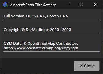 <figure><img src="https://1629832642-files.gitbook.io/~/files/v0/b/gitbook-x-prod.appspot.com/o/spaces%2F-MgfZtkRND9VtsnbRax7%2Fuploads%2Fnup4lW4utGrR7cxKHnac%2Fimage_2023-07-07_140135846.png?alt=media&#x26;token=4bc5b583-c8f5-4ef0-a828-c3c7bf4d0a8c" alt=""><figcaption><p>Minecraft Earth Tiles is created by Matti Borchers and uses many open source projects!</p></figcaption></figure>
